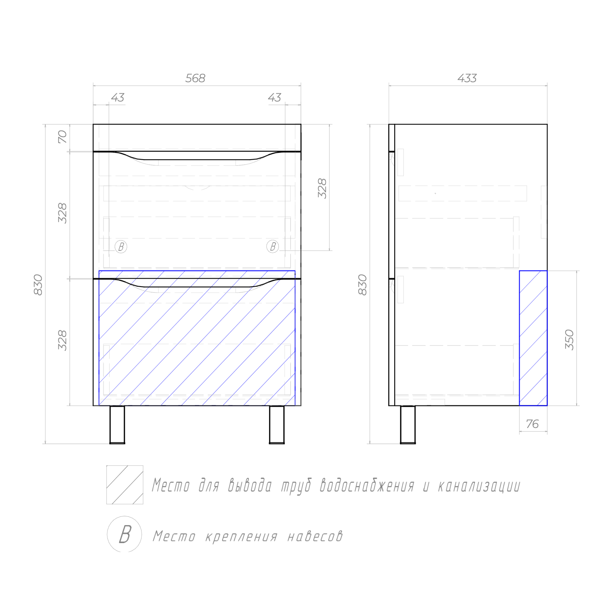 Тумба под раковину Grani 600-0-2 (Como) — стильная компактность и удобство