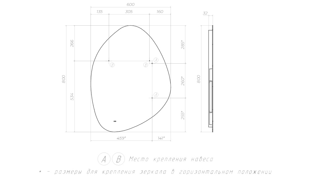 Размер: Ш600хГ32х800 мм